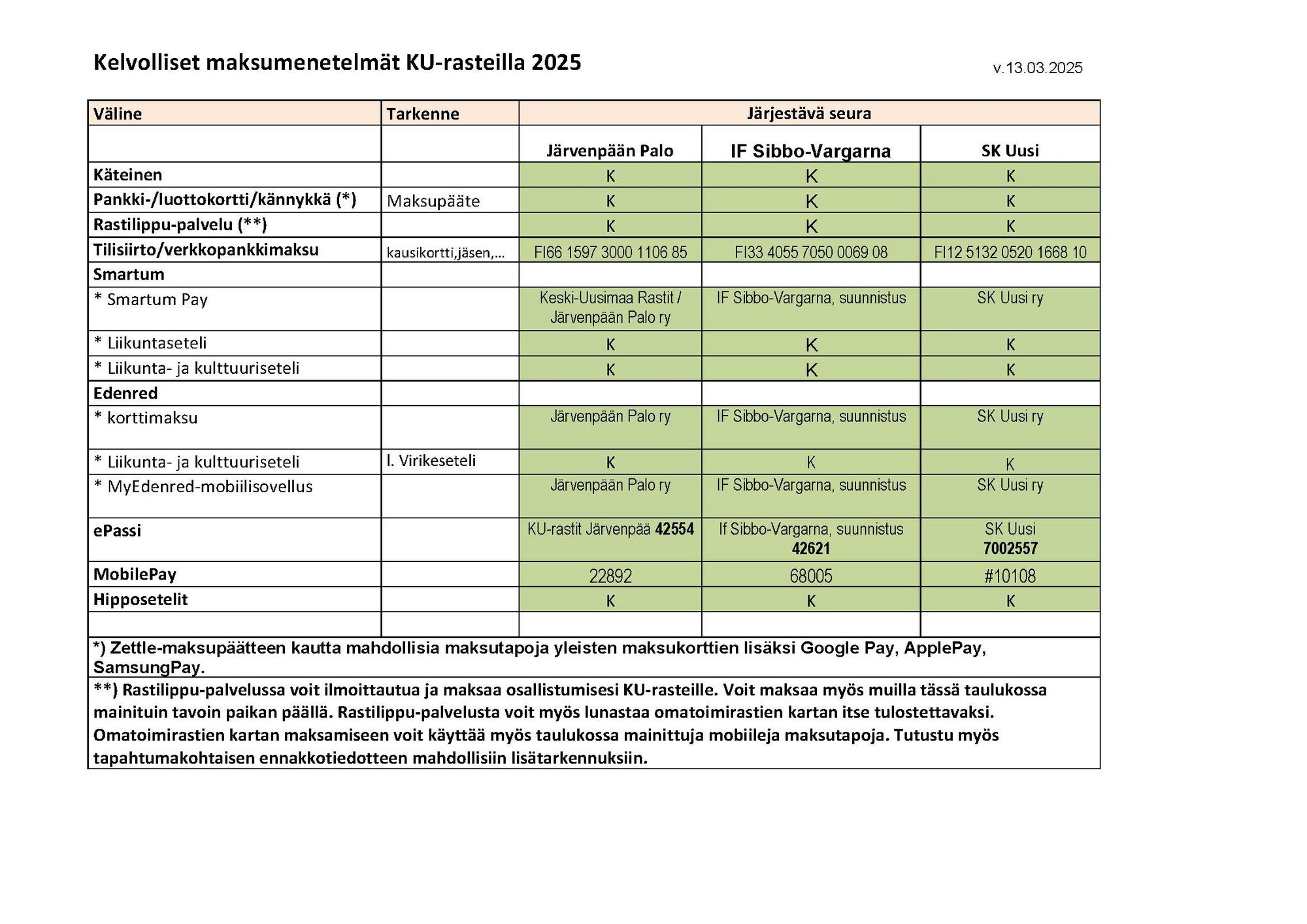 KU-rastit: Ilmoittautuminen ja maksuohjeet (Kaudella 2025)